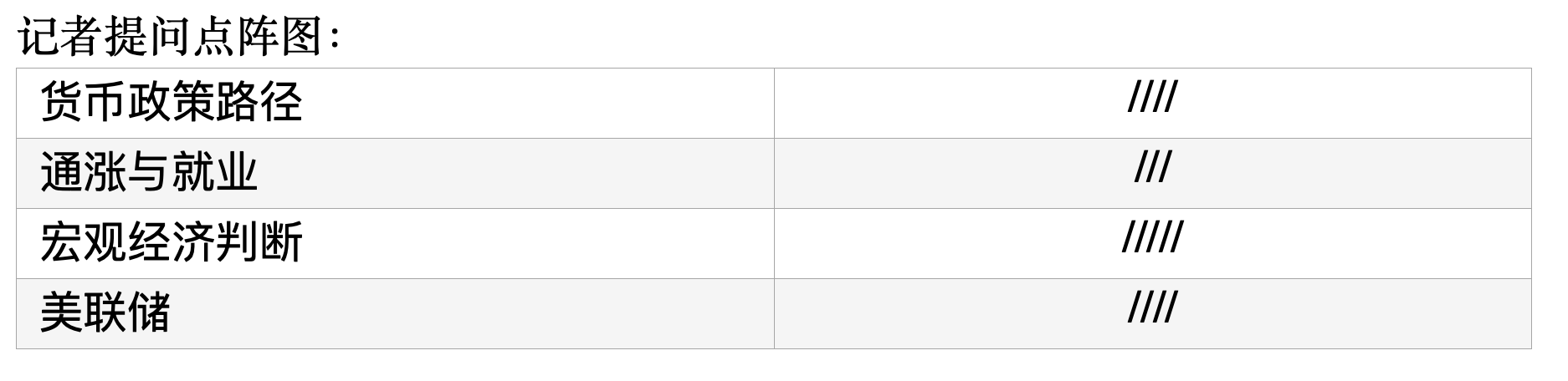 美联储判断通胀升高和失业率升高这两项风险跟3月份比有所上升,但我们无法判断它们会如何发展。关税最终落在什么水平不清楚,关税对经济和就业产生什么影响不清楚。好在货币政策水平适当,我们可以等待形势明朗。忽略今年一季度扭曲的数据,美国就业稳健,通胀略高于目标,总体形势良好。货币政策较去年放松100个基点后依然略微偏紧,这让我们可以保持耐心观察数据,数据变化可快可慢,要等形势逐步清晰。